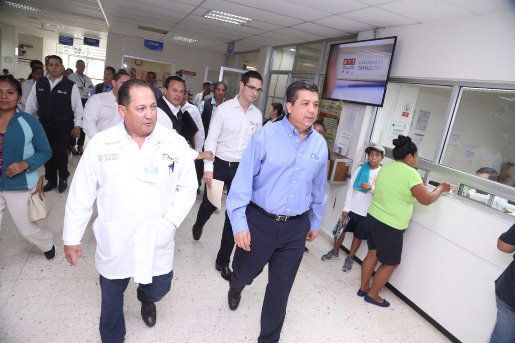 El gobernador Francisco García Cabeza de Vaca supervisó los trabajos de remodelación y rehabilitación del Hospital General de Reynosa que permitirán fortalecer la infraestructura hospitalaria, ampliar su capacidad resolutiva y mejorar la calidad en la prestación de servicios.