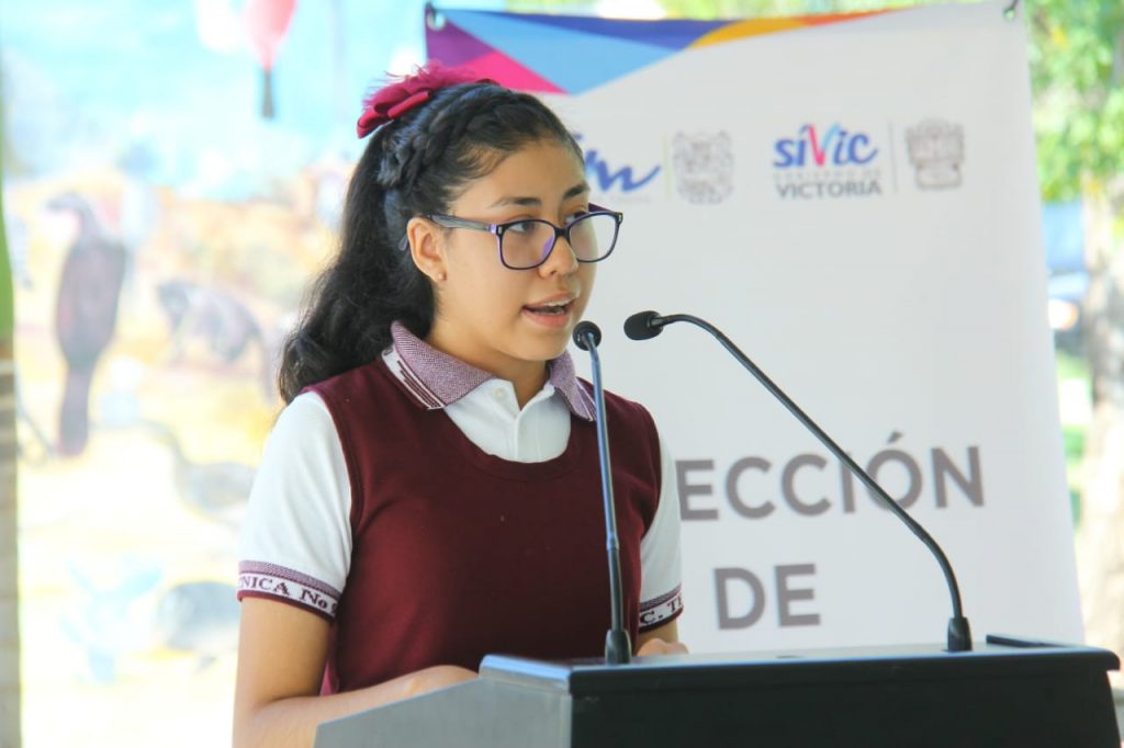 Acto seguido, la niña Annia Miranda Turrubiates, a nombre de la Escuela Eugenio Hernández Balboa, extendió el agradecimiento al Gobierno de Xicoténcatl González Uresti, por el esfuerzo y el alto grado de compromiso social que el municipio refrenda con la niñez y la juventud victorense al dar inicio en esta institución, el programa de prevención de embarazos entre adolescentes.