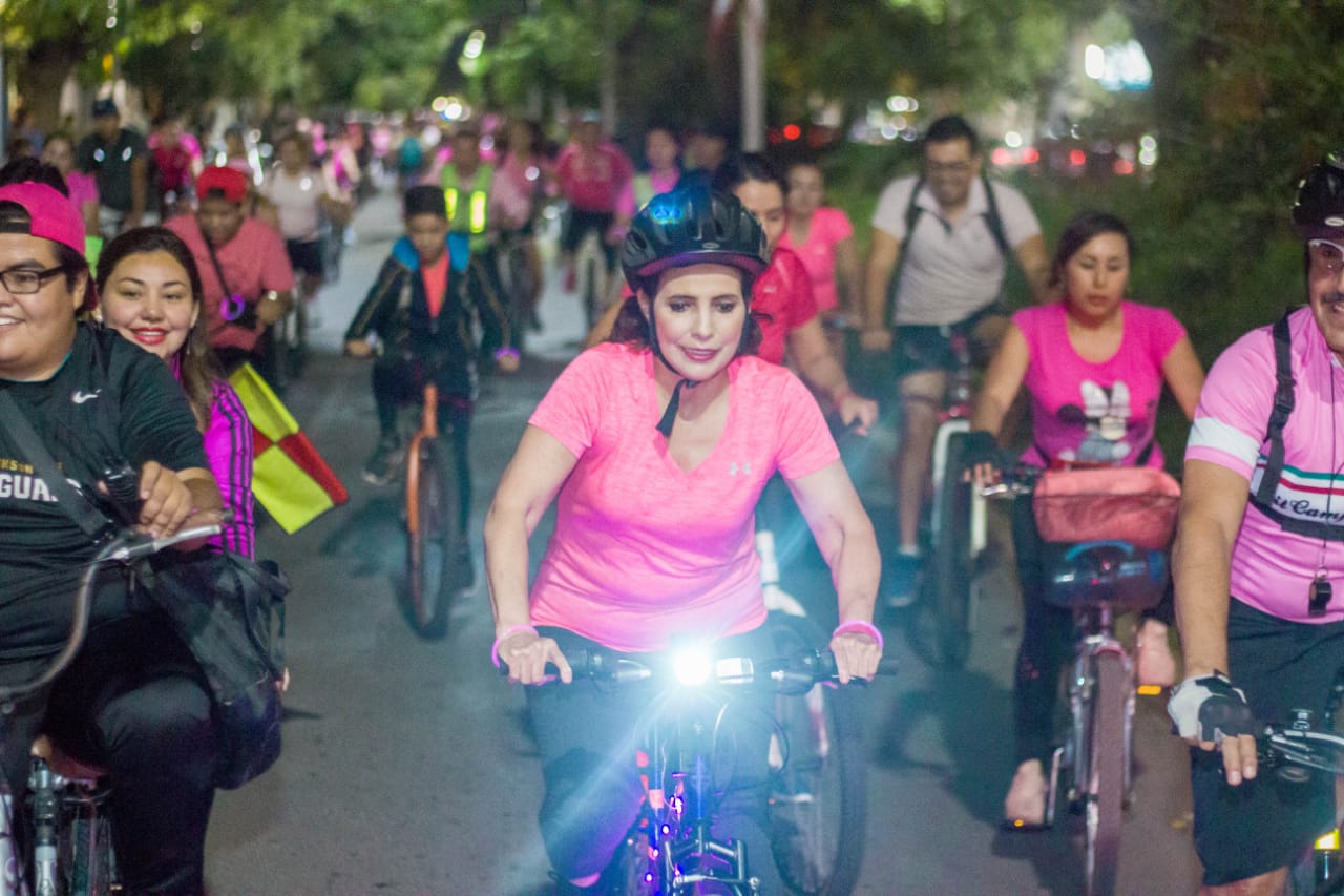 Encabezaron la “Rodada Rosa”, junto con la presidenta del DIF Municipal, señora Arcelia Flores; la directora de Bienestar Social del Ayuntamiento de Victoria, Yolanda Quintanilla Becerra, en representación del alcalde, Doctor Xicoténcatl González Uresti y la directora general de nuestra institución, Juanita Anyelin Quintanilla Becerra. La señora Arcelia Flores, agradeció al Departamento de Atención a la Juventud, que dirige Isaac Montemayor Aguilar, por el apoyo en la organización y acompañamiento durante el recorrido de la misma.