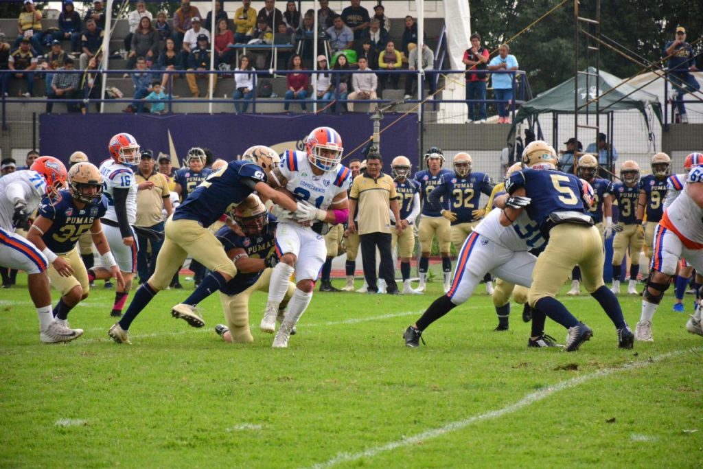 Partido de la Semana 8, Temporada 2019, que se jugó bajo fuerte lluvia este sábado por la tarde en el emparrillado de la Facultad de Estudios Superiores de la UNAM, Campus Acatlán.