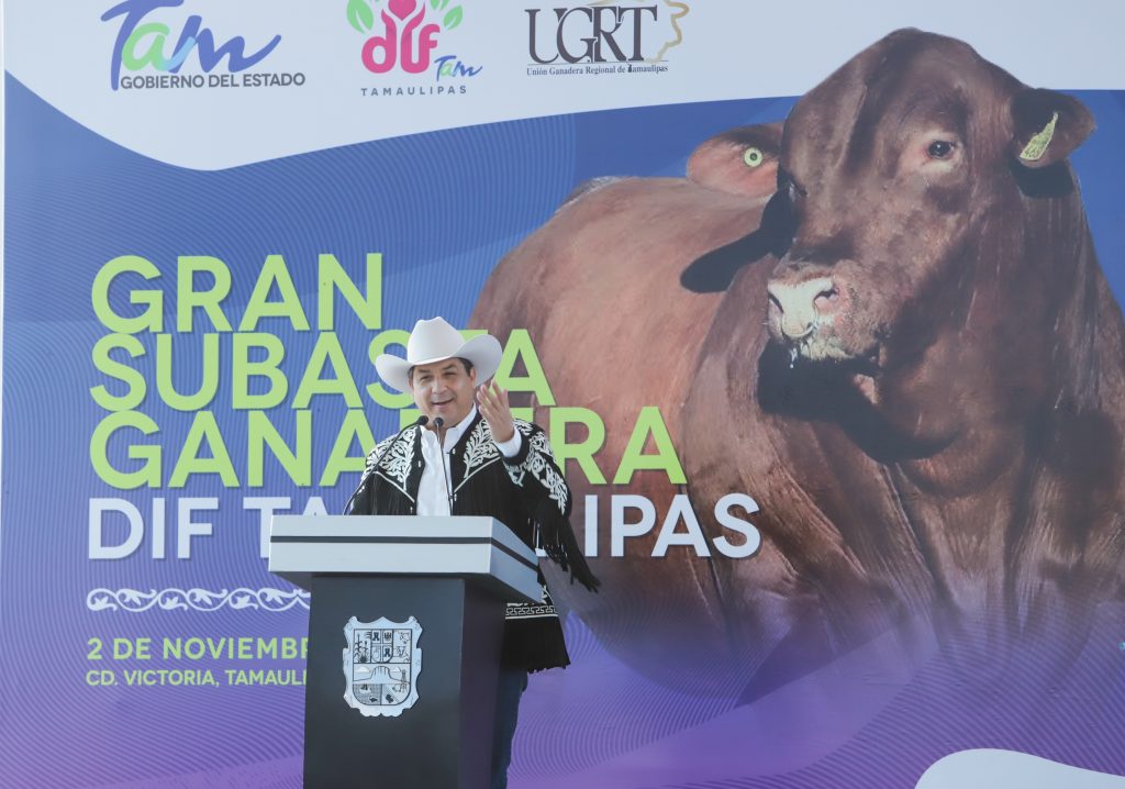 El evento de comercialización y beneficencia fue presidido por el gobernador Francisco García Cabeza de Vaca y la presidenta del Sistema DIF Tamaulipas, Mariana Gómez de García Cabeza de Vaca, en el que se ofrecieron 52 lotes de finos ejemplares de diversas razas bovinas, de los cuales 35 fueron donados por los ganaderos al DIF Estatal.