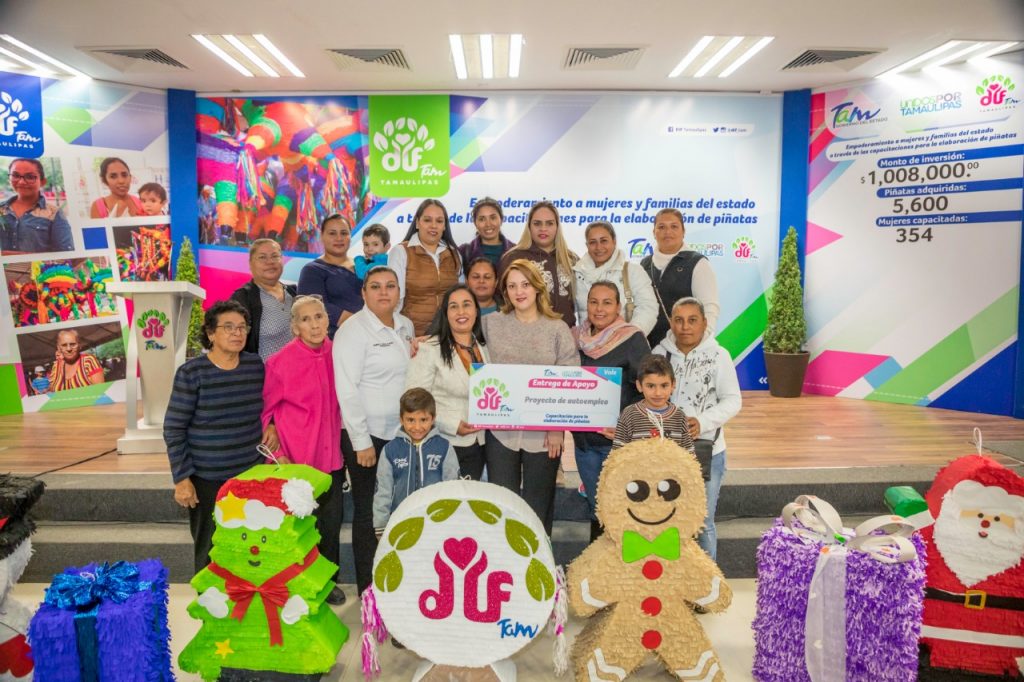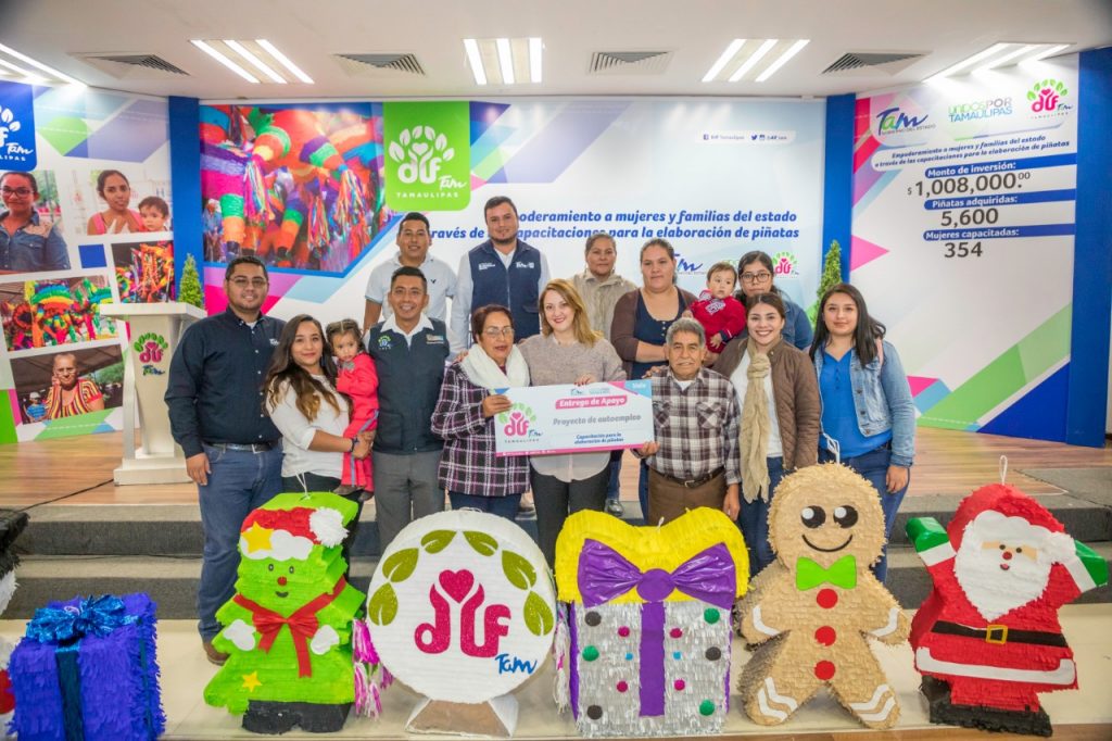 La titular del DIF Estatal, hizo entrega de más de 1 millón de pesos a 354 mujeres de 9 municipios por el concepto de pago por la elaboración de 5 mil 600 piñatas que se utilizarán en las fiestas decembrinas de municipios, agrupaciones civiles y DIF Tamaulipas.
