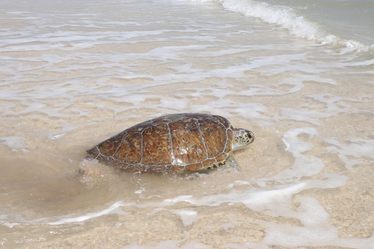 Personal de esta comisión liberó la mañana de este viernes, un ejemplar de tortuga verde en la Playa la Pesca en el municipio de Soto La Marina, a este ejemplar se le realizaron pruebas de nado por lo que se consideró apta para su liberación.