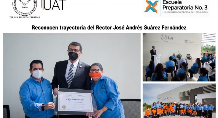 El Ing. José Andrés Suárez Fernández recibió un reconocimiento por su trayectoria al frente de la Universidad Autónoma de Tamaulipas (UAT), en la que concluye su gestión rectoral 2018-2021.