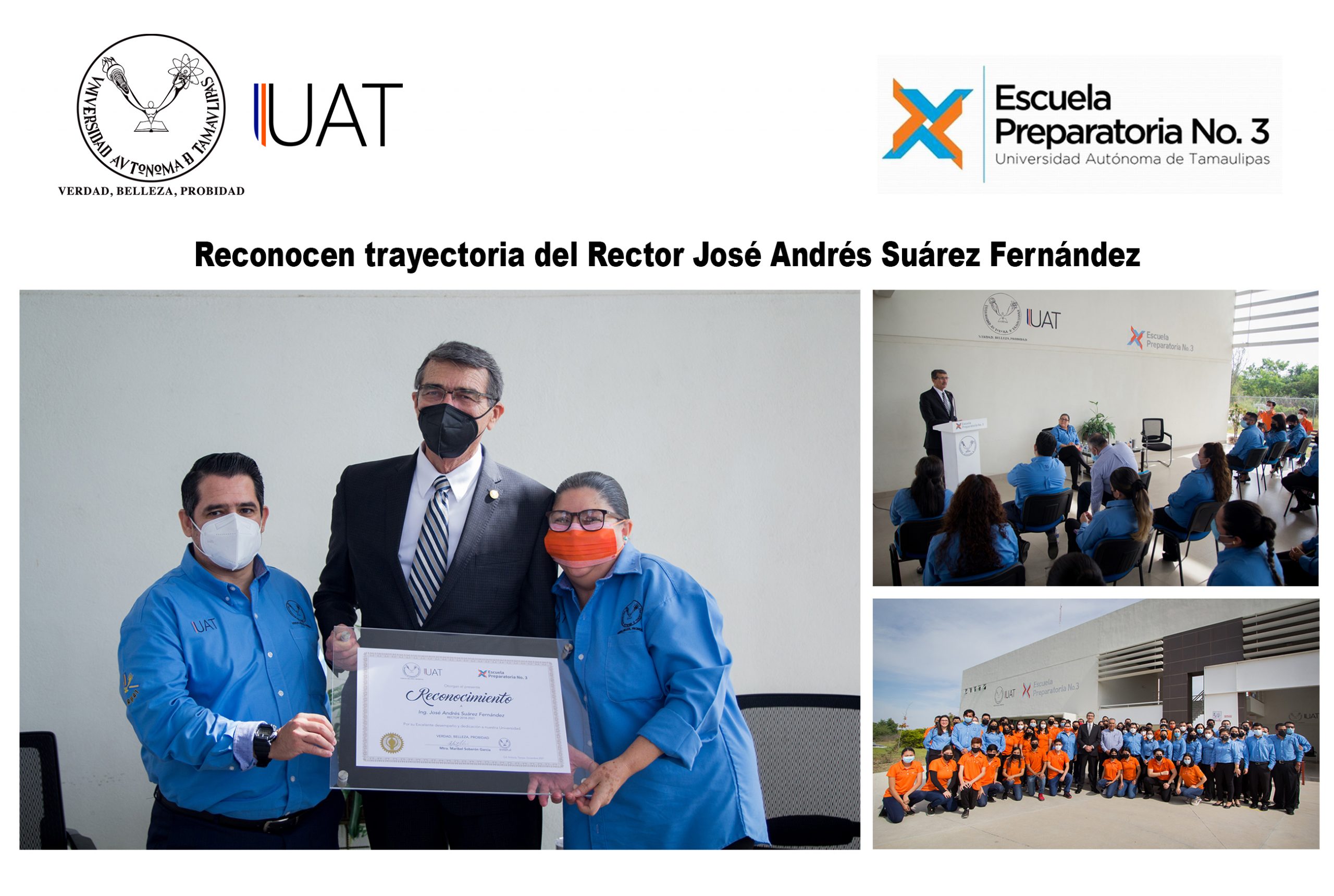 El Ing. José Andrés Suárez Fernández agradeció el galardón por parte de esta escuela, la cual tuvo a bien inaugurar sus actividades en el 2013 en el edificio conocido como “El Peñón”, de esta capital, y que en su momento vino a sumarse a las dos escuelas de bachillerato de la UAT localizadas en Ciudad Mante y Valle Hermoso.