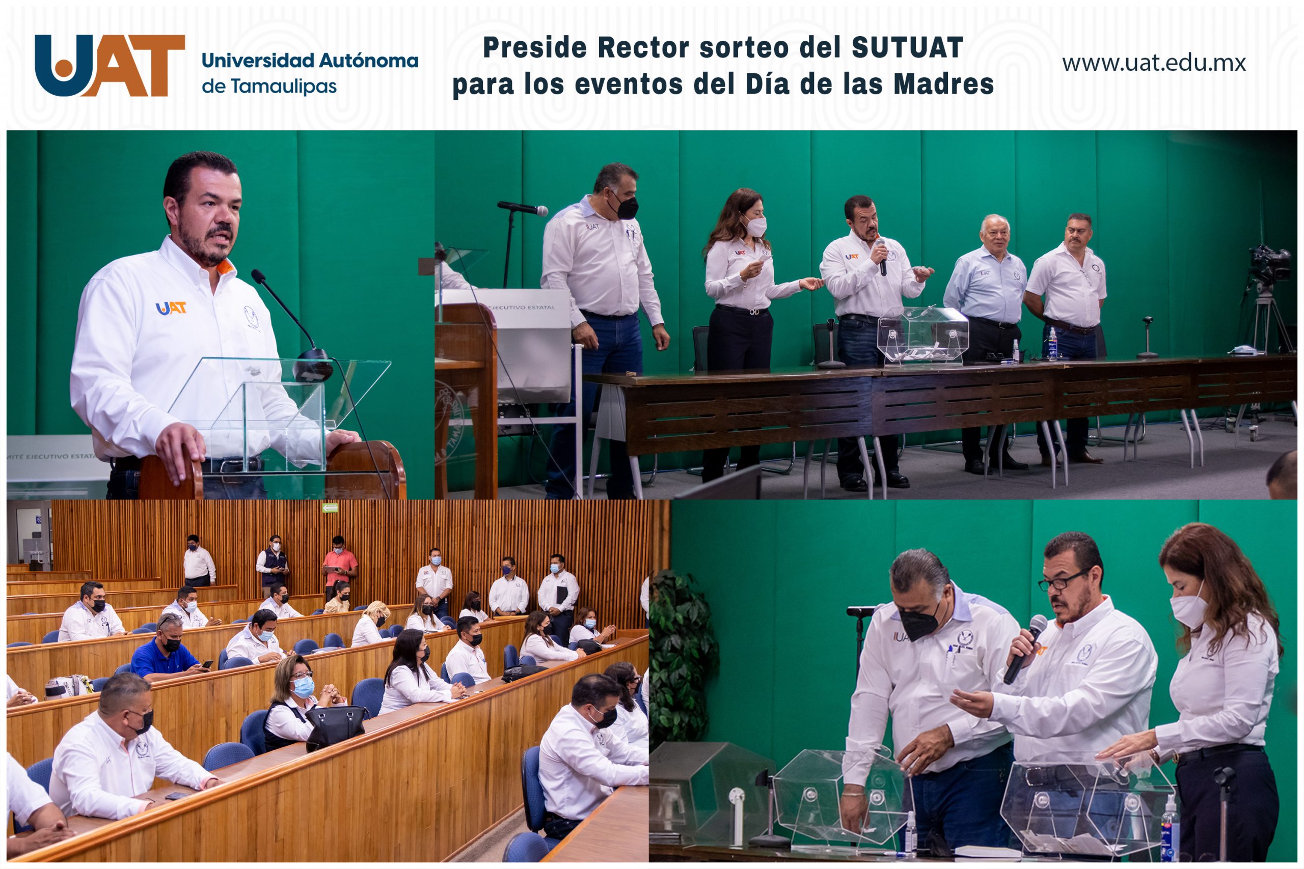 El C. P. Guillermo Mendoza Cavazos, Rector de la Universidad Autónoma de Tamaulipas (UAT), presidió el sorteo por el Día de las Madres dirigido a las trabajadoras sindicalizadas que laboran en las diferentes dependencias, facultades, unidades académicas y escuelas que conforman la máxima casa de estudios.