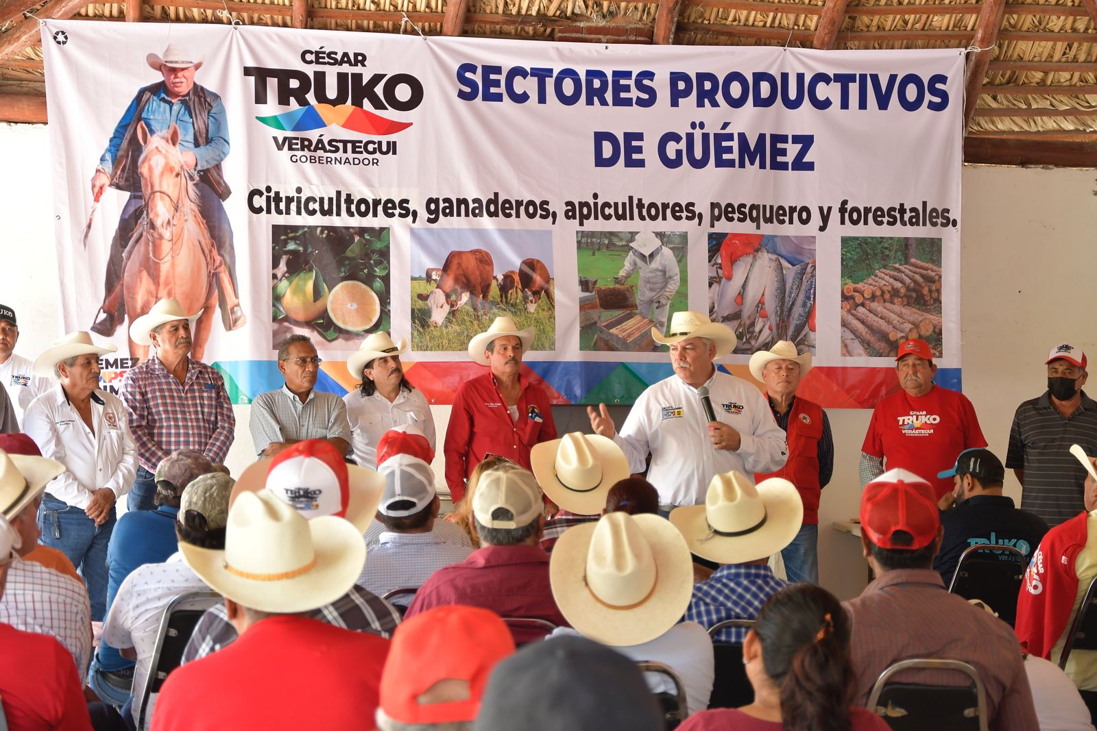 Ante ganaderos, agricultores, citricultores y pescadores, Truko destacó que las políticas públicas nacionales “le están pegando directamente a la cabeza a la gente que se dedica a producir”, y que no se ha ocupado de entregar obras importantes, que, por ejemplo, detone la vocación citrícola de Güémez.
