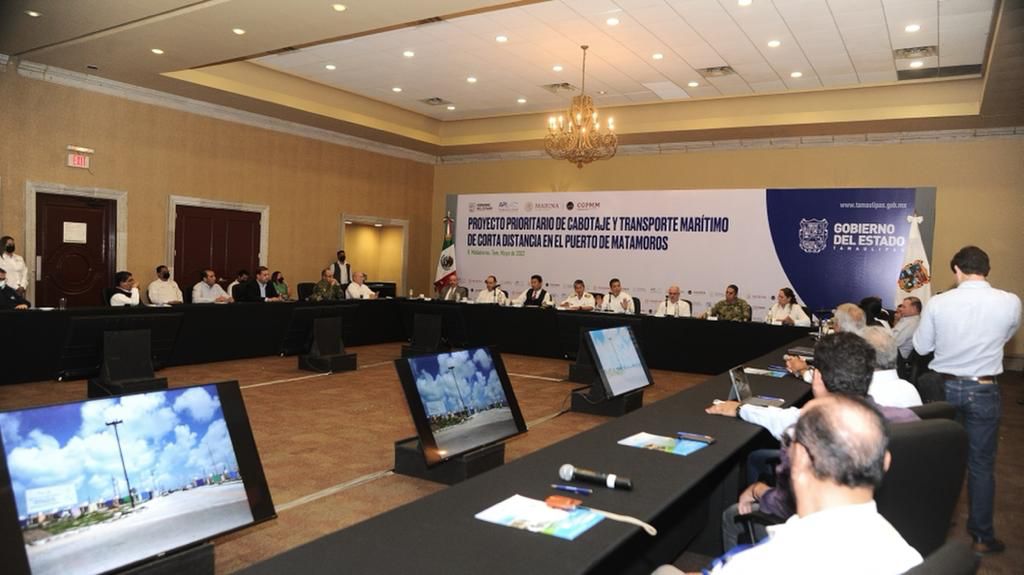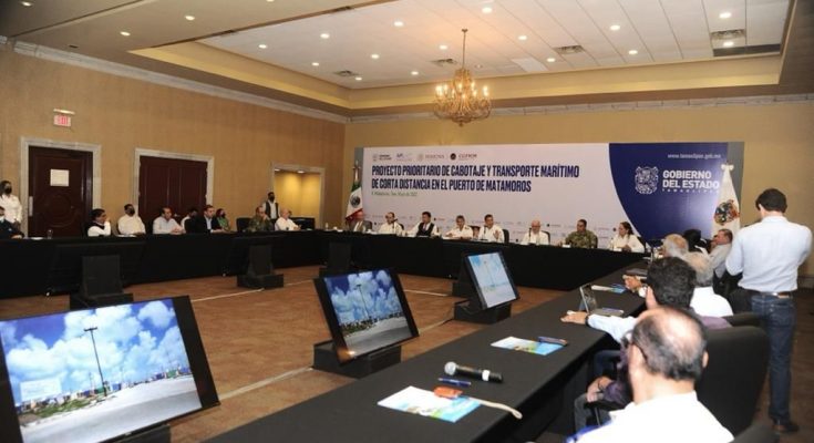 El Gobernador Francisco García Cabeza de Vaca, asistió a la presentación del proyecto de cabotaje y transporte marítimo de corta distancia que será ejecutado en el Puerto de Matamoros, por la Coordinación General de Puertos y Marina Mercante de la Secretaría de Marina del Gobierno de México.