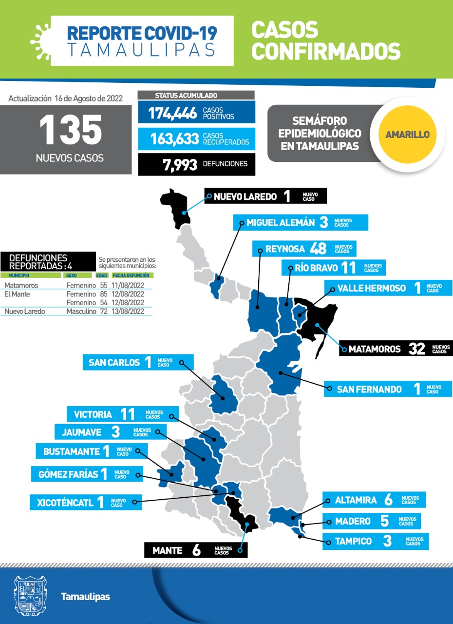 Luego de que Tamaulipas regresara a semáforo epidemiológico color amarillo, tras el descenso de casos de la quinta ola de COVID-19, La secretaria de Salud, Gloria Molina Gamboa pidió no confiarse ni bajar la guardia, ya que continúa el riesgo de contagio y de un rebrote de la enfermedad.