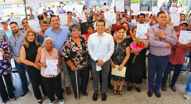 En la emotiva ceremonia, las y los trabajadores beneficiados estuvieron acompañados por sus familias y se sumaron al reconocimiento el Oficial Mayor Alberto Loya López, el secretario del Ayuntamiento Hugo Reséndez Silva y la secretaria de Bienestar Social Lorena Zapata Medina.