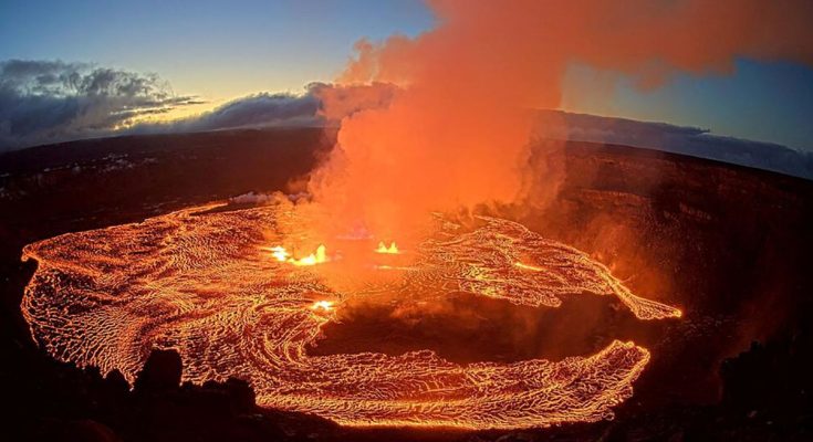El volcán Kilauea, situado en la Isla Grande de Hawái, entró en erupción a primera hora de la mañana del miércoles, pero los flujos de lava se limitan actualmente al suelo del cráter circundante, informó el Servicio Geológico de Estados Unidos