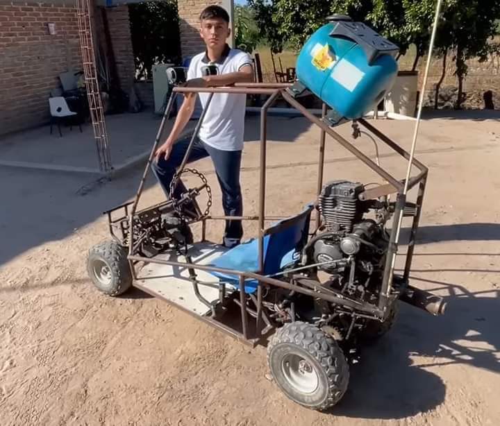El joven, de 16 años y estudiante del Conalep, Rosvel E. Cruz, construyó el vehículo junto a su padre utilizando partes recicladas de otros autos.