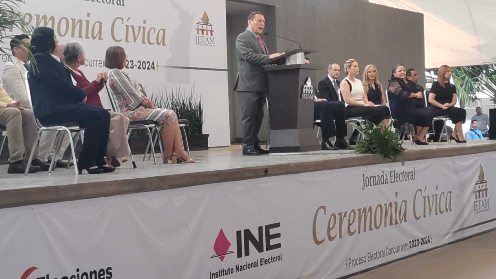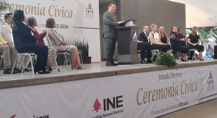 CIUDAD VICTORIA. – Esta mañana, con una ceremonia cívica de Honores a la Bandera Nacional, se dio inicio a la jornada electoral en Tamaulipas.