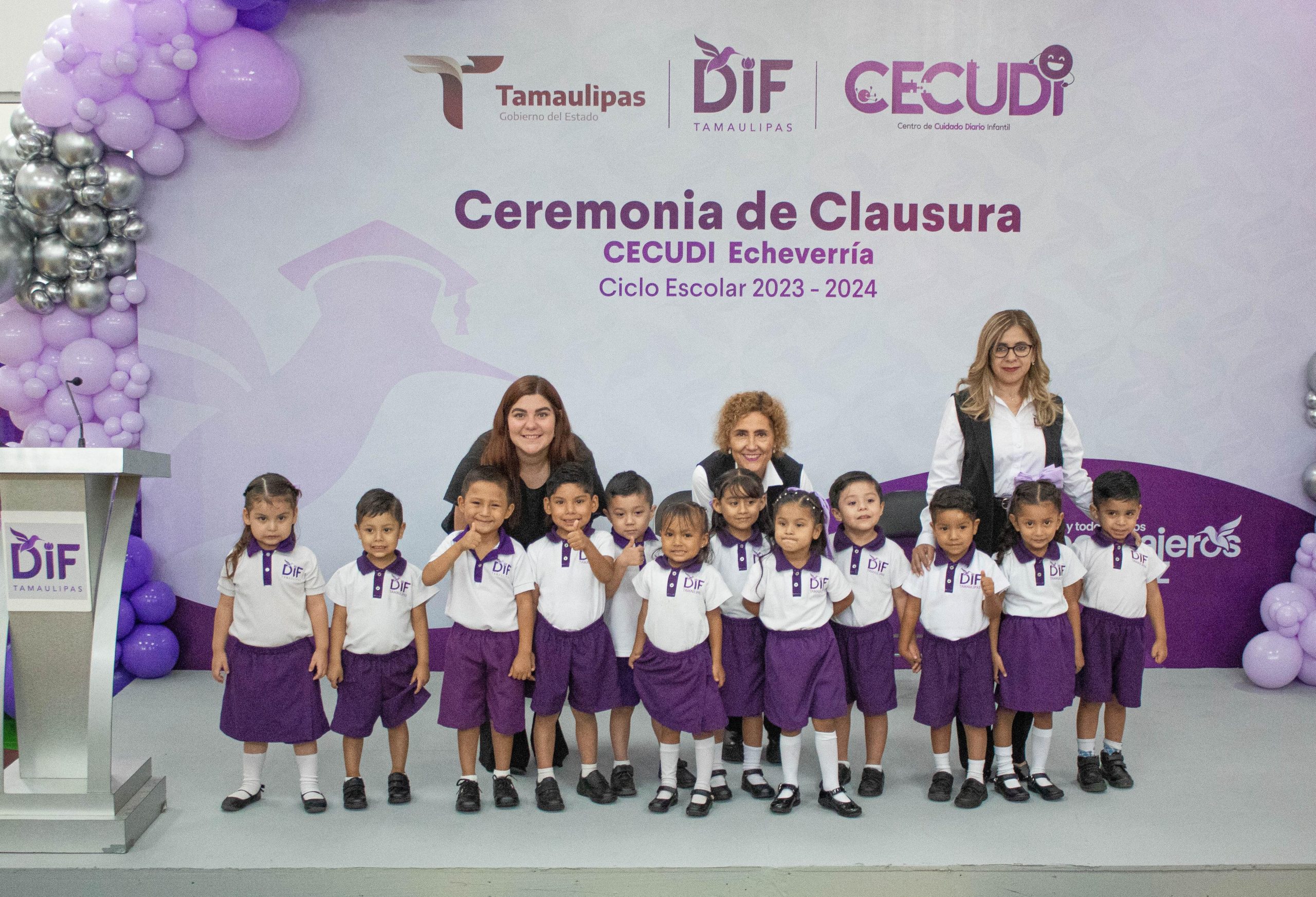 Ciudad Victoria, Tamaulipas. Al término del reciente ciclo escolar y de acuerdo con el calendario oficial de la Secretaría de Educación, 2 mil 924 alumnas y alumnos inscritos en los Centros de Cuidado Diario Infantil (CECUDI) y en los Centros de Atención Infantil Comunitarios (CAIC) del Sistema DIF Tamaulipas que preside la doctora María de Villarreal, culminaron su instrucción preescolar.