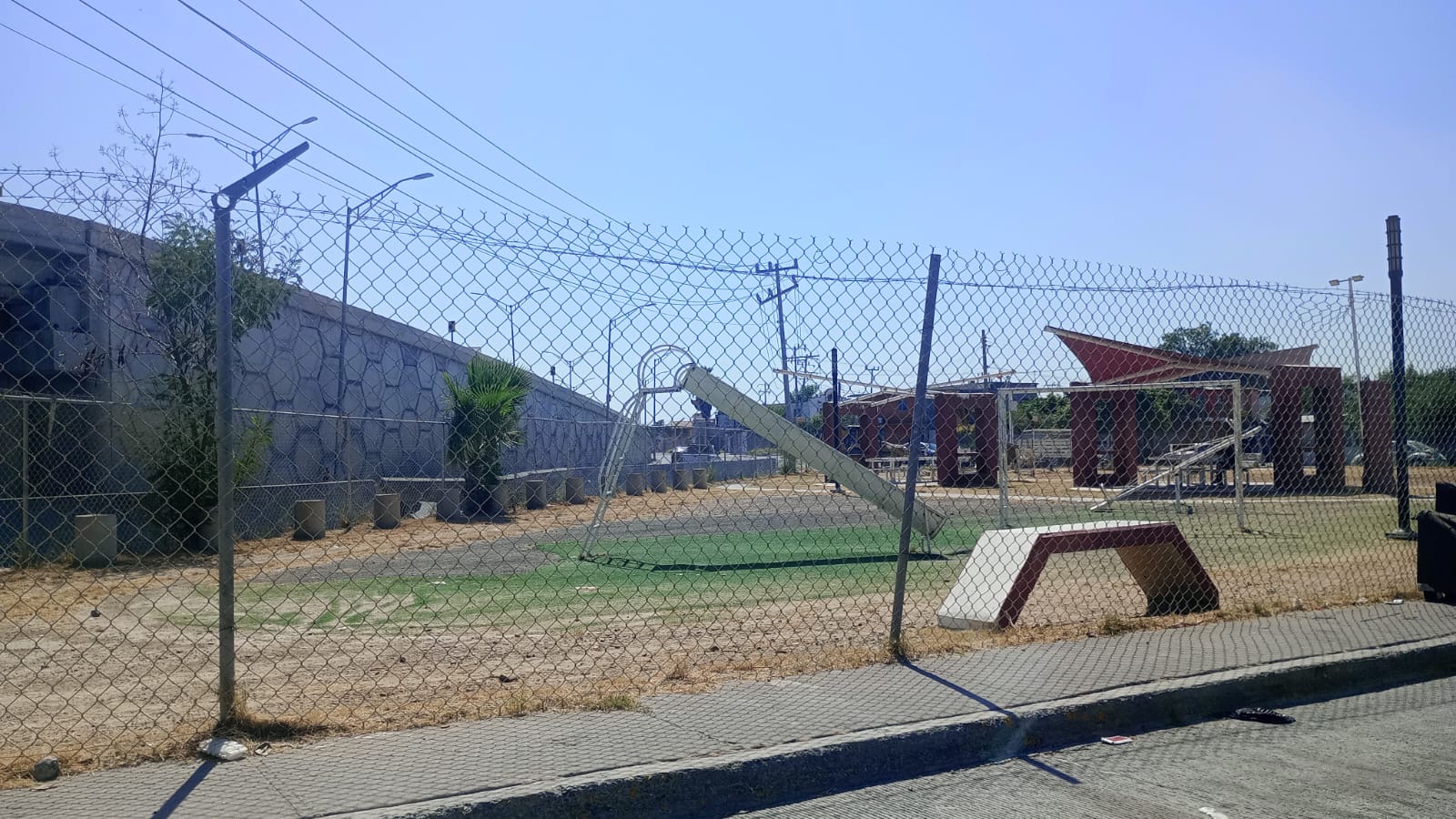 Además, los juegos existentes están oxidados y presentan un riesgo considerable para los menores, lo que refleja un abandono total por parte de las autoridades.