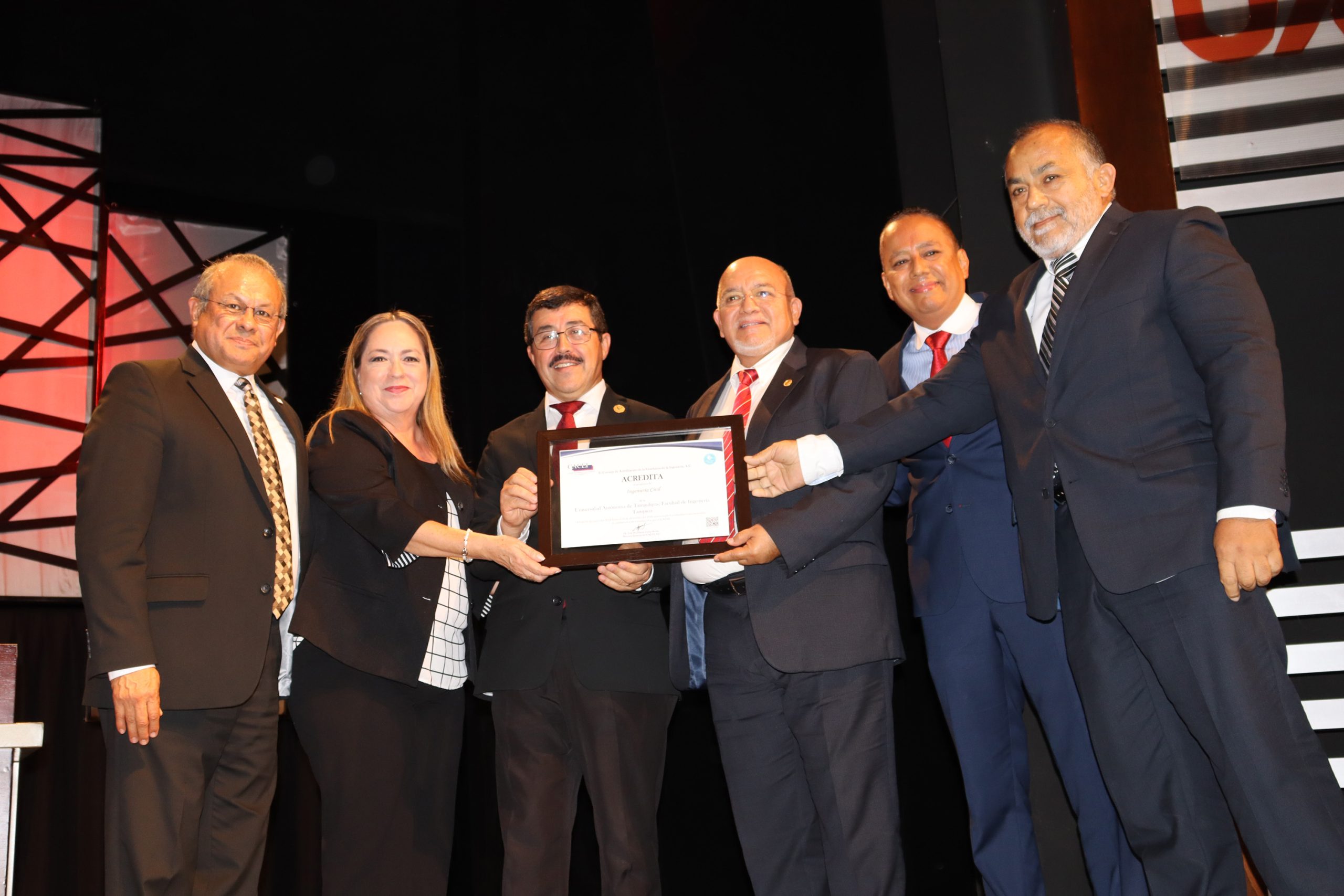 El MVZ Dámaso Anaya Alvarado, rector de la UAT, junto a representantes de organismos nacionales de evaluación y acreditación de la educación superior, presidió la entrega de los reconocimientos a titulares de las dependencias académicas que fueron avaladas por sus altos estándares educativos.