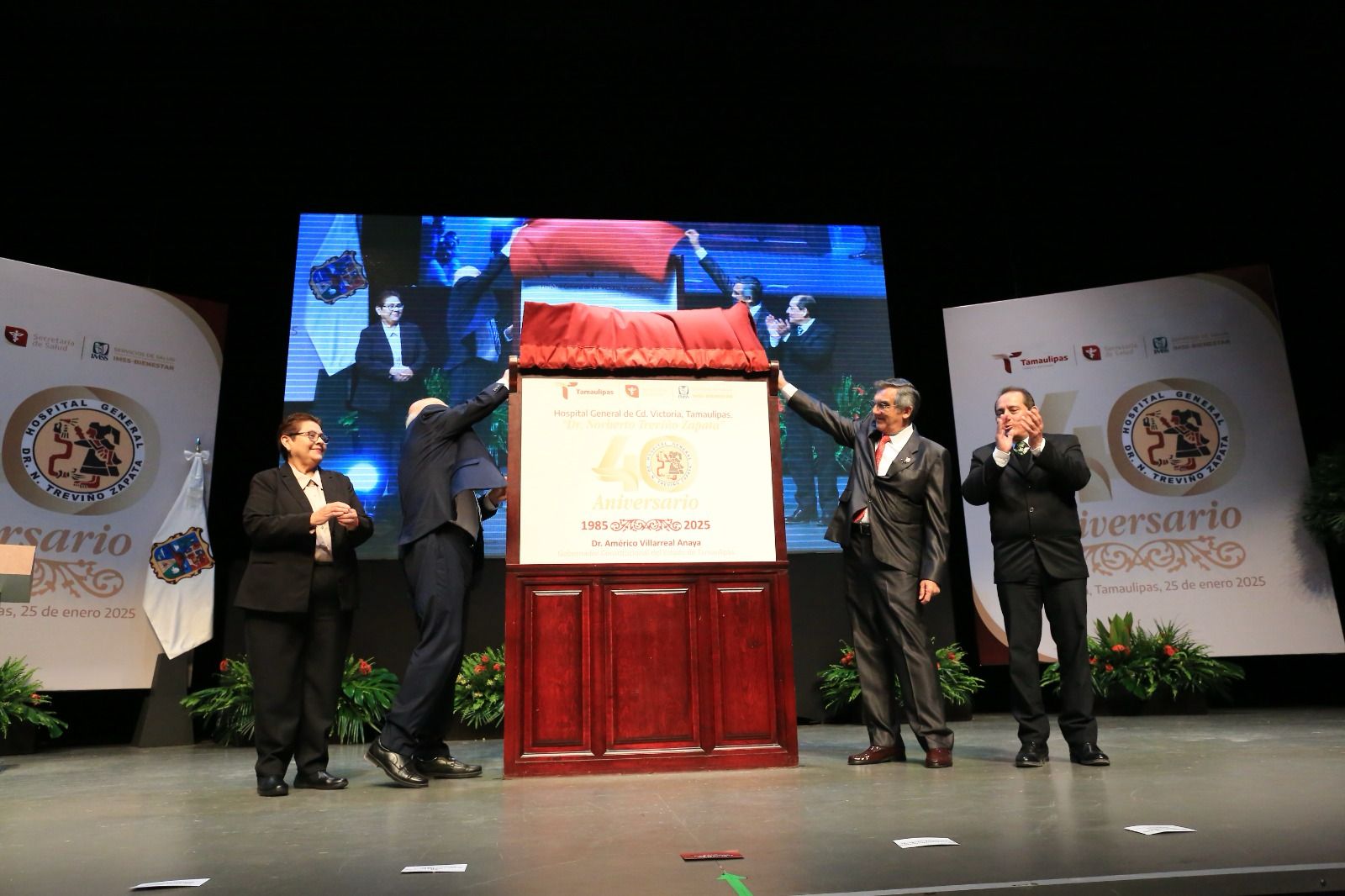 Ciudad Victoria, Tamaulipas.- A 40 años de su fundación el Hospital General “Dr. Norberto Treviño Zapata”, hoy IMSS-Bienestar, se ha convertido en símbolo de calidad, esfuerzo y trabajo y es referencia para 400 mil tamaulipecas y tamaulipecos, sin seguridad social en la zona centro del estado, afirmó el gobernador Américo Villarreal Anaya.