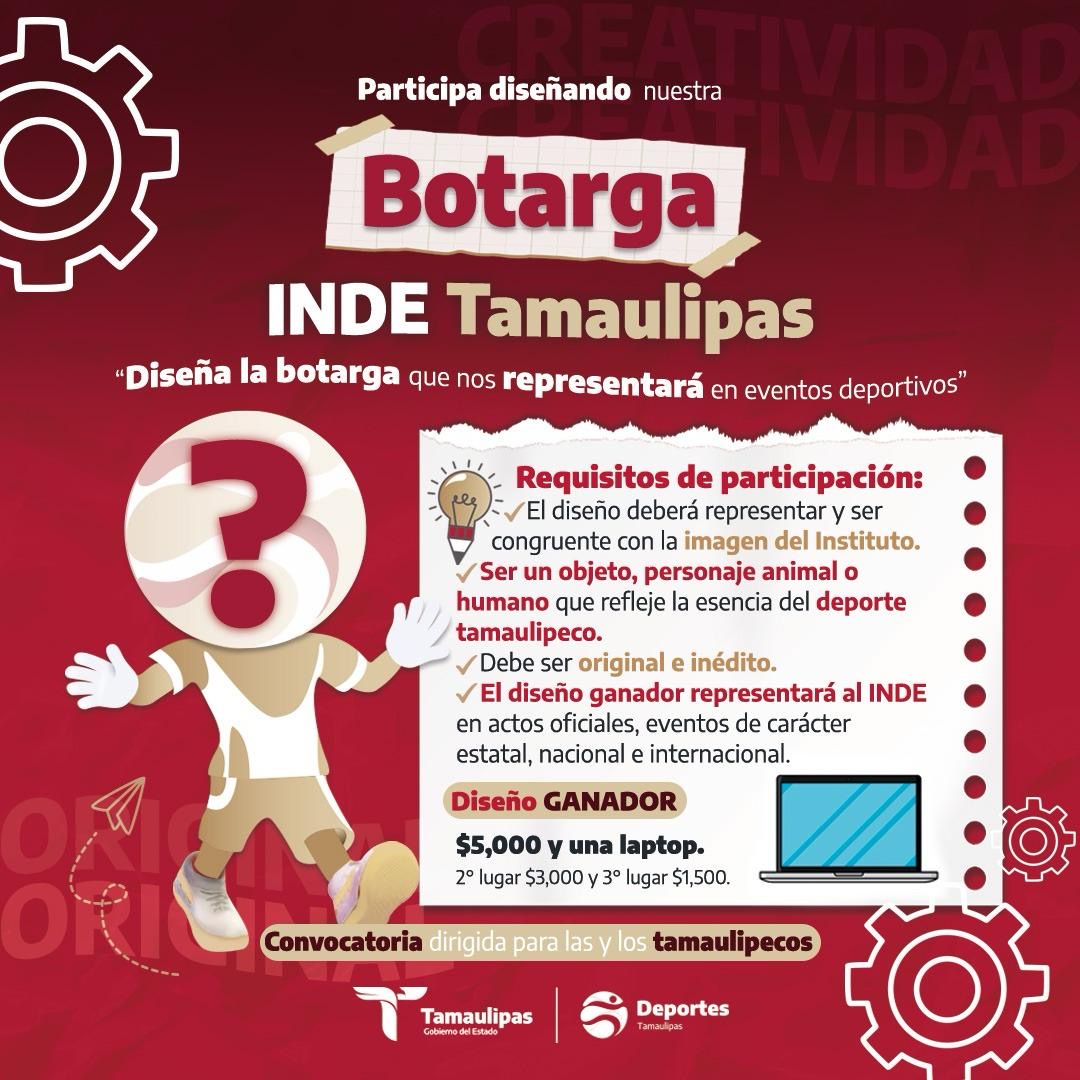 El Instituto del Deporte de Tamaulipas invita a la comunidad a participar en el diseño de la botarga que representará al estado en eventos deportivos a nivel estatal, macrorregional y nacional, incluyendo competencias como los Nacionales CONADE y otros eventos en los que el instituto tenga participación.
