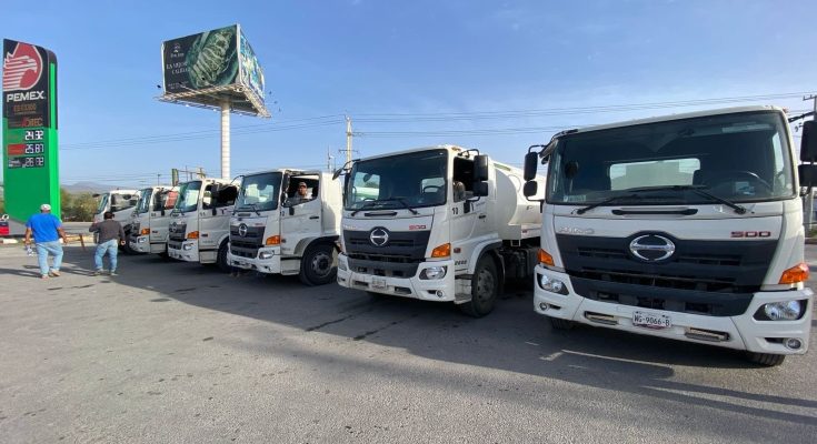 El Mante, Tamaulipas.- Para reforzar el combate a los incendios en la región, la Secretaría de Recursos Hidráulicos envió seis camiones cisterna con capacidad de 10,000 litros cada uno al municipio de El Mante, siguiendo las instrucciones del gobernador Américo Villarreal Anaya.