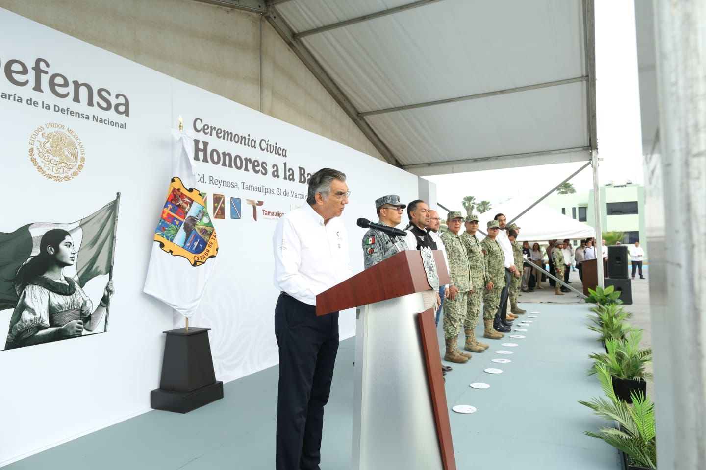 En esta ceremonia acompañaron al gobernador el general Juan José Gómez Ruiz, comandante de la IV Región Militar; el general Fernando Colchado Gómez, comandante de la 8/a Zona Militar; el general Enrique García Jaramillo, comandante de la 48/a Zona Militar; el contralmirante Víctor Manuel Salas Hernández, comandante del Sector Naval Matamoros, y el coronel Milton Carlos Pantaleón Rocha, comandante del XII Batallón de la Guardia Nacional.