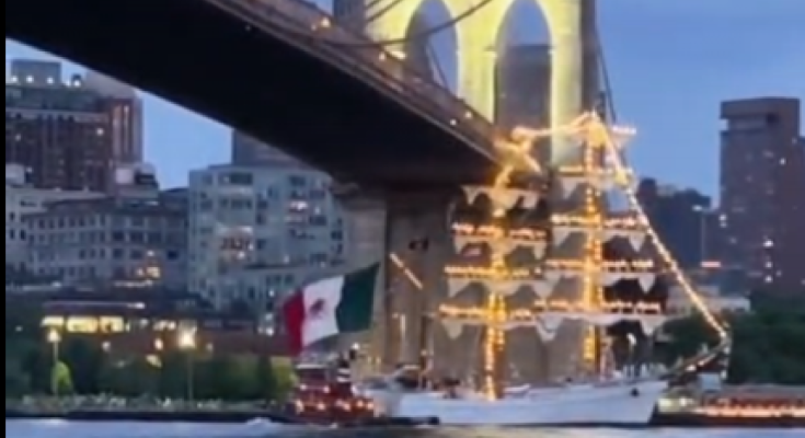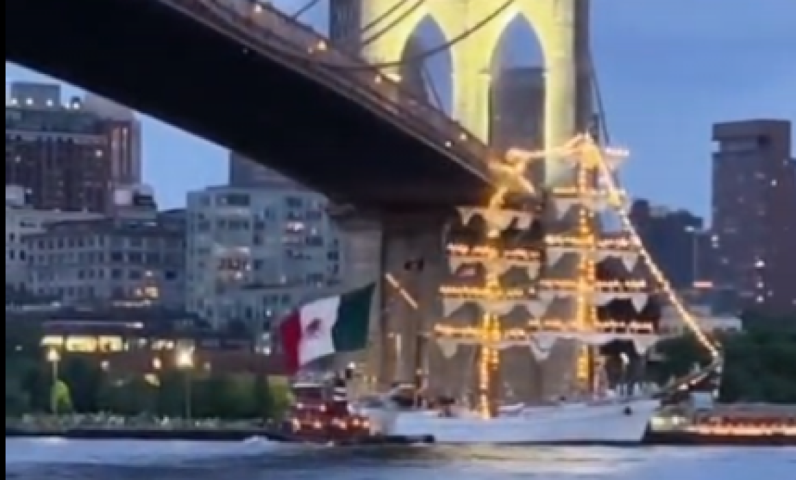 Cabe señalar que el Buque Escuela Cuauhtémoc chocó hoy contra el puente de Brooklyn.
