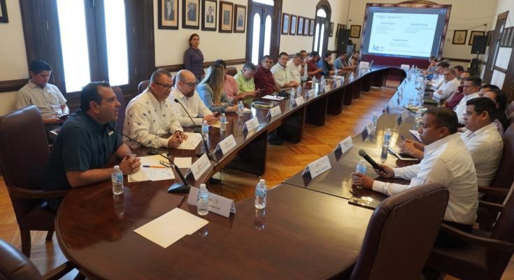El Secretario del Ayuntamiento Hugo Reséndez Silva coordinó la reunión de trabajo celebrada en la sala de Cabildo en la que participaron titulares de la CFE, ITAVU, CMIC, CANADEVI, COMAPA, áreas municipales e integrantes del Cabildo.