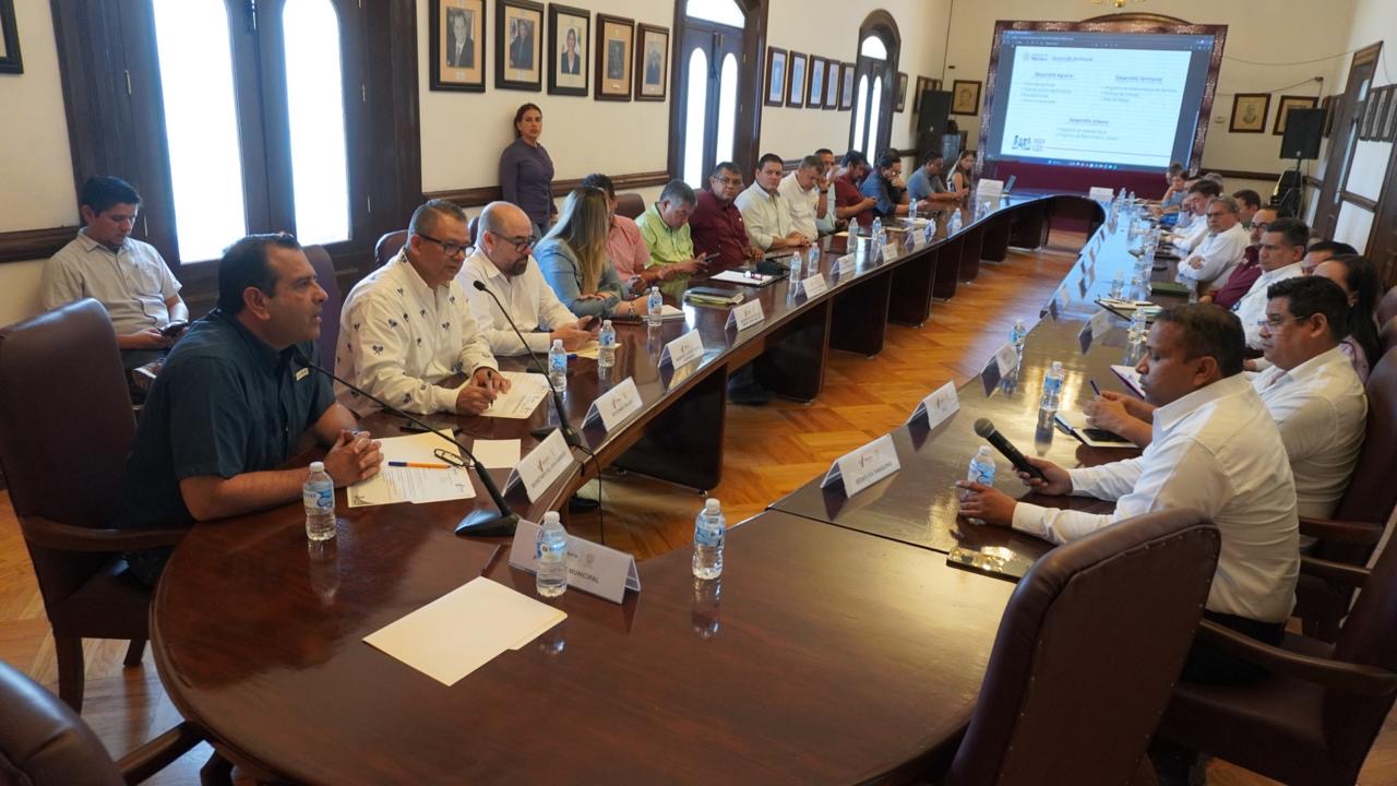 El Secretario del Ayuntamiento Hugo Reséndez Silva coordinó la reunión de trabajo celebrada en la sala de Cabildo en la que participaron titulares de la CFE, ITAVU, CMIC, CANADEVI, COMAPA, áreas municipales e integrantes del Cabildo.