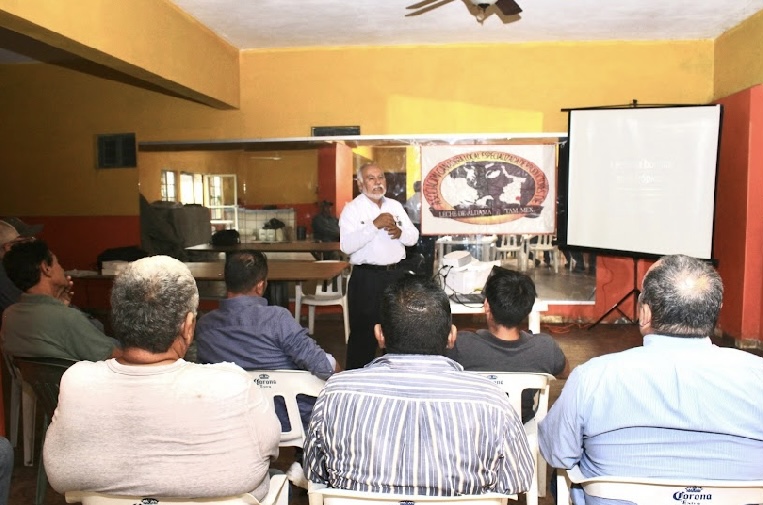 Aldama, Tamaulipas.- Reafirmando su compromiso con el fortalecimiento del sector pecuario, el Gobierno del Estado de Tamaulipas, por medio de la Secretaría de Desarrollo Rural, Pesca y Acuacultura, impartió un taller de capacitación dirigido a los ganaderos lecheros del municipio de Aldama.