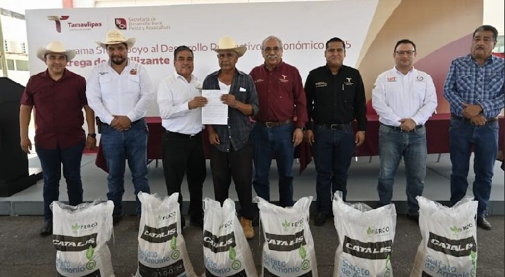 Güémez, Tamaulipas. – En el marco de las acciones impulsadas por el Gobierno de la Cuarta Transformación, continúa por tercer año consecutivo la entrega de fertilizantes a citricultores a través del Programa de Apoyo al Desarrollo Productivo y Económico, en el componente de Insumos y Material Vegetativo para la Producción Primaria Agrícola, al cual se destinó un presupuesto de 15 millones de pesos.