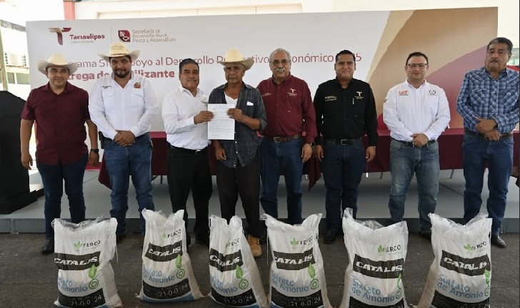 El secretario de Desarrollo Rural, Pesca y Acuacultura, Antonio Varela Flores, encabezó el arranque de la entrega de fertilizante en el municipio de Güémez, donde se benefició a 225 productores citrícolas con un total de 70.25 toneladas de fertilizante, con el objetivo de fortalecer la productividad y sostenibilidad del campo tamaulipeco.