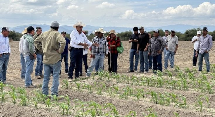 Posteriormente, se realizó un recorrido por las parcelas donde se cultiva el maíz, en el que técnicos extensionistas y productores explicaron las labores realizadas, tales como la preparación del terreno, siembra, control de malezas y manejo de plagas. Estas actividades se llevan a cabo bajo la asesoría y capacitación técnica brindada por la Dirección de Extensionismo Agrícola.