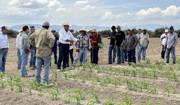 Posteriormente, se realizó un recorrido por las parcelas donde se cultiva el maíz, en el que técnicos extensionistas y productores explicaron las labores realizadas, tales como la preparación del terreno, siembra, control de malezas y manejo de plagas. Estas actividades se llevan a cabo bajo la asesoría y capacitación técnica brindada por la Dirección de Extensionismo Agrícola.
