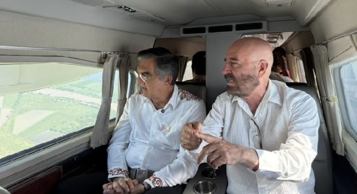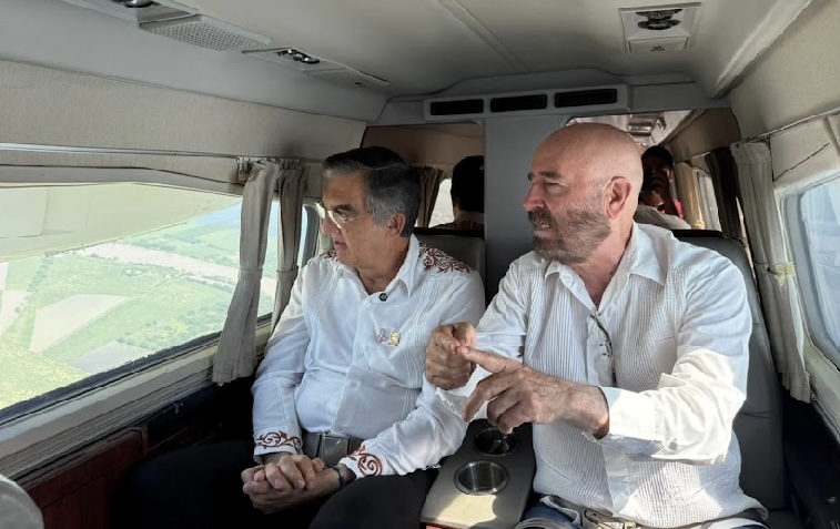 La tarde de este viernes, a bordo del avión «Tláloc» y acompañado por Raúl Quiroga Álvarez, secretario de Recursos Hidráulicos, el ejecutivo tamaulipeco recorrió las márgenes del Pánuco, hasta el municipio de Tamuín, San Luis Potosí, en donde constató las afectaciones a diversas comunidades rurales a causa del desbordamiento del río.