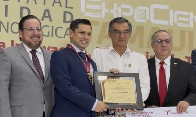 Refirió que esto marca un logro histórico para la UTM, al ser la primera vez que uno de sus docentes obtiene esta prestigiosa distinción, la cual fue entregada por el gobernador Américo Villarreal Anaya, en una ceremonia donde se reconoció a las y los tamaulipecos más destacados en los ámbitos científico, tecnológico y de innovación.