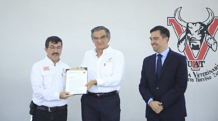 Acompañado por el rector de la UAT, Dámaso Anaya Alvarado, y dirigentes del sector ganadero del estado, el gobernador recibió de manos de Leandro David Soriano García, director general de Inocuidad Agroalimentaria, Acuícola y Pesquera del Senasica, el documento que permite la actividad diaria de la sala de corte y deshuese para la especie bovina, cámara de producto terminado, almacén, empaque y andenes de carga y descarga en el rastro ubicado en la Facultad de Medicina Veterinaria y Zootecnia, en esta capital.