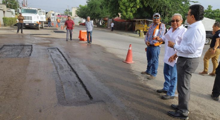«El plan de bacheo va conforme a lo planeado en las cuatro rutas prioritarias para recuperar el 70 por ciento del asfalto dañado» señaló Gattás Báez en el recorrido que realizó junto al secretario de Obras Públicas y contratista de la empresa responsable.