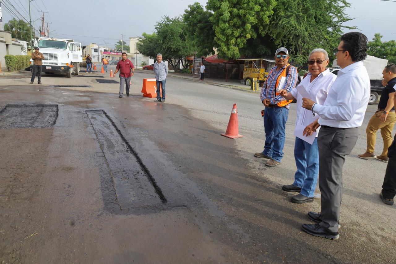 «El plan de bacheo va conforme a lo planeado en las cuatro rutas prioritarias para recuperar el 70 por ciento del asfalto dañado» señaló Gattás Báez en el recorrido que realizó junto al secretario de Obras Públicas y contratista de la empresa responsable.