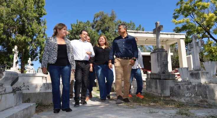Cd. Victoria, 30 de octubre 2025. – Previo al inicio de la festividad del Día de Muertos, el alcalde de Victoria, Eduardo Gattás Báez, supervisó la limpieza y medidas de seguridad en los panteones municipales que el fin de semana serán visitados por miles de personas que acudirán a honrar a sus seres queridos fallecidos.