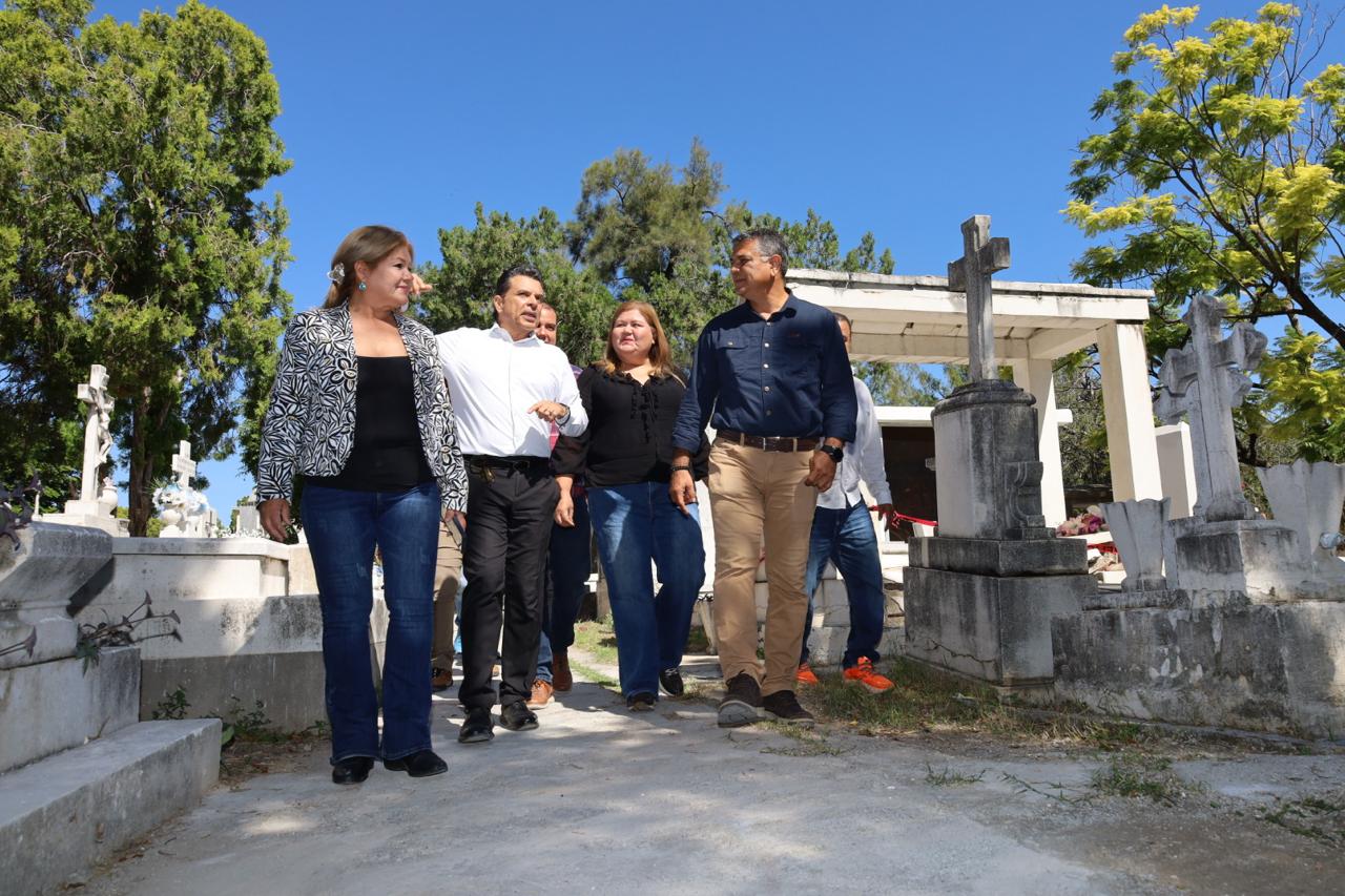 Cd. Victoria, 30 de octubre 2025. – Previo al inicio de la festividad del Día de Muertos, el alcalde de Victoria, Eduardo Gattás Báez, supervisó la limpieza y medidas de seguridad en los panteones municipales que el fin de semana serán visitados por miles de personas que acudirán a honrar a sus seres queridos fallecidos.