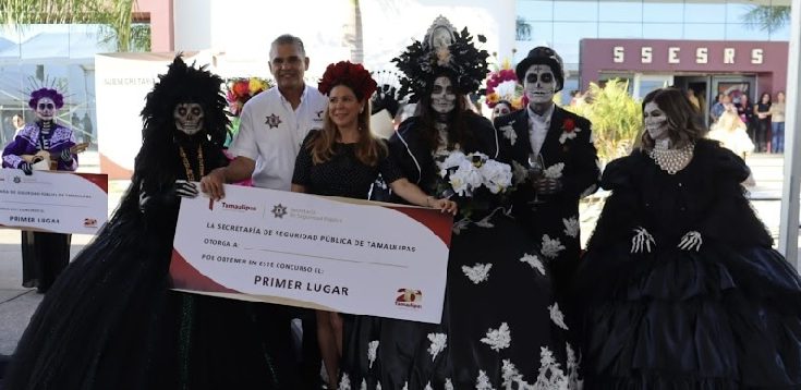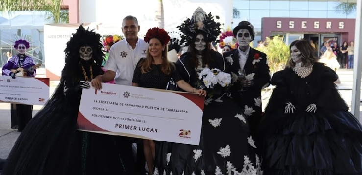 Ciudad Victoria, Tamaulipas.- Con un colorido desfile lleno de flores, trajes tradicionales y música, personal operativo y administrativo de la Secretaría de Seguridad Pública de Tamaulipas (SSPT) celebró el Día de Muertos con el concurso interno de catrinas y catrines 2025.