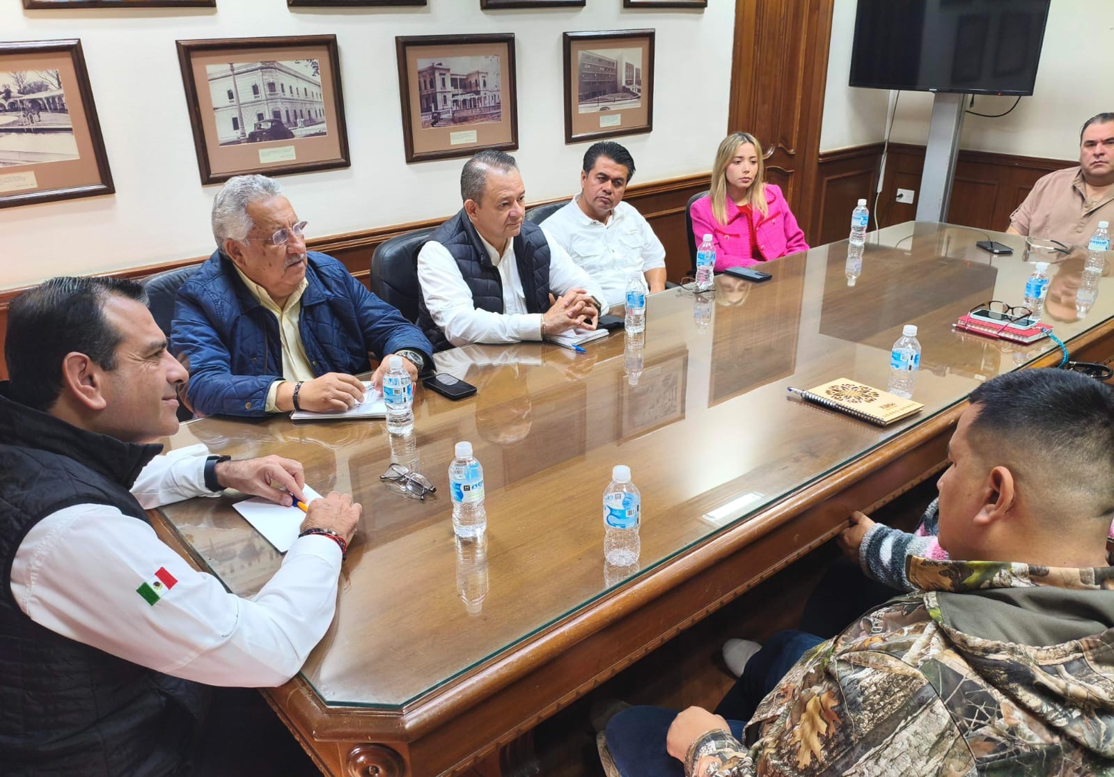 Por instrucción del alcalde Eduardo Gattás Báez, el secretario del Ayuntamiento Hugo Reséndez Silva presidió la reunión de colaboración en la que estuvo presente Livio Flores Rodríguez, coordinador de Protección Civil, Luis Peláez, de la Mesa de Seguridad Municipal, y José Hernández Cuesta, de Participación Ciudadana.