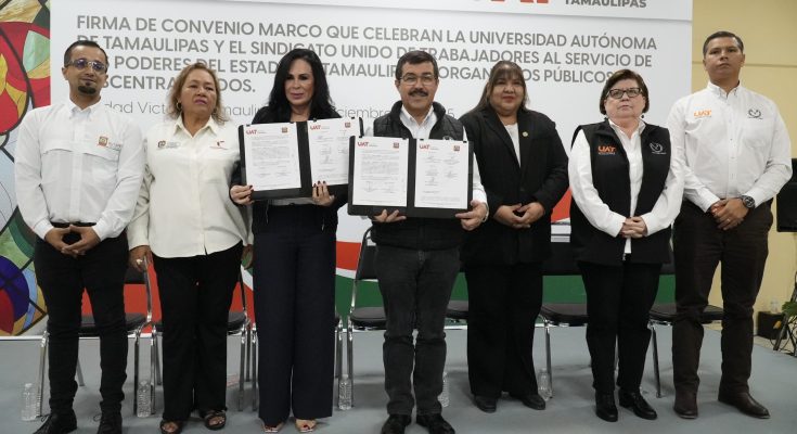 La Universidad Autónoma de Tamaulipas (UAT) y el Sindicato Único de Trabajadores al Servicio de los Poderes del Estado de Tamaulipas y Organismos Públicos Descentralizados (SUTSPET) formalizaron la firma de un Convenio Marco de Colaboración que establece un amplio esquema de becas, capacitación y apoyos educativos en beneficio de trabajadores sindicalizados y sus hijos.