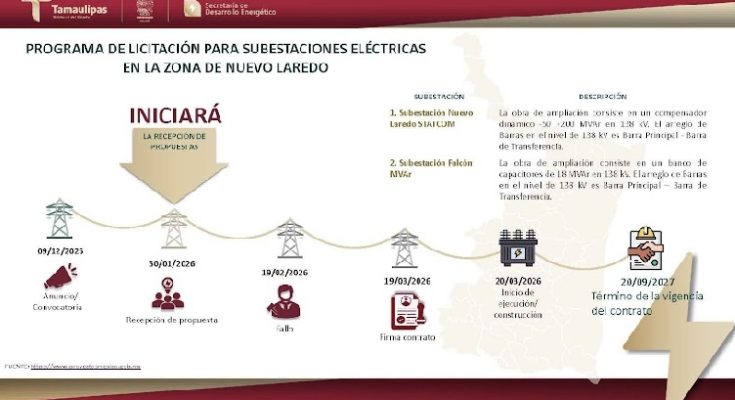 Ciudad Victoria Tamaulipas.- Como parte del compromiso estratégico de la Comisión Federal de Electricidad (CFE) para modernizar la red eléctrica nacional, se anunció el inicio del proceso de licitación para obras de infraestructura eléctrica en la ciudad fronteriza de Nuevo Laredo.