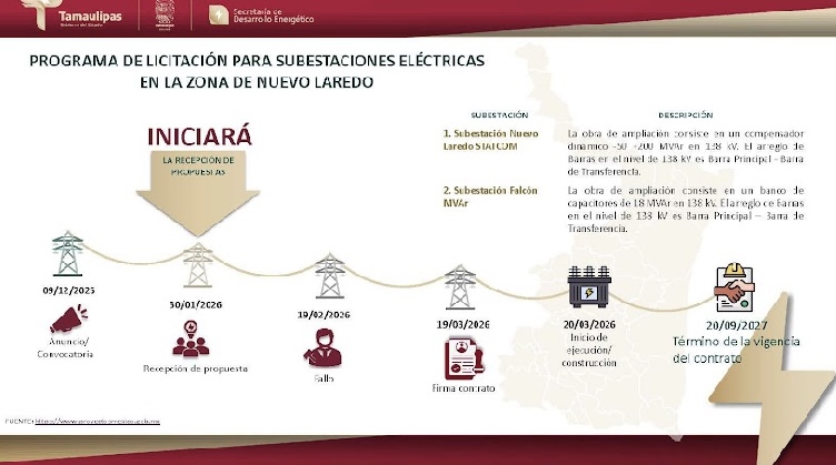 El subsecretario de Electricidad y Energías Renovables de la SEDENER, Roberto Manuel Rendón, indicó que esto parte del Programa de Obras 2026, el cual tiene como objetivo principal robustecer el soporte de tensión y garantizar un suministro eléctrico de alta calidad, respondiendo al crecimiento de la demanda industrial y residencial en esta frontera estratégica.