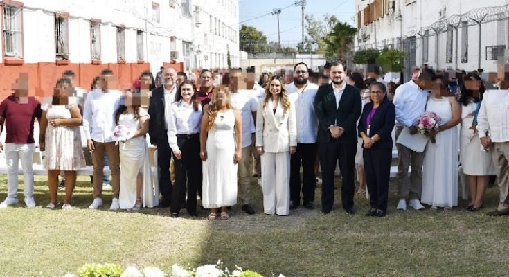 Ciudad Victoria, Tamaulipas.– Con base en el respeto a los derechos de las personas privadas de la libertad (PPLs) y en la estrategia de reinserción social, que tiene a las relaciones familiares entre sus ejes fundamentales, 21 parejas formalizaron su unión al interior del Centro de Ejecución de Sanciones (CEDES) de Ciudad Victoria.