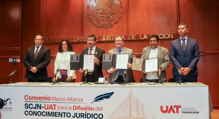 La Universidad Autónoma de Tamaulipas (UAT) y la Suprema Corte de Justicia de la Nación (SCJN) suscribieron el Convenio Marco Alianza SCJN–UAT para la Difusión del Conocimiento Jurídico, así como un convenio específico en materia de servicio social.