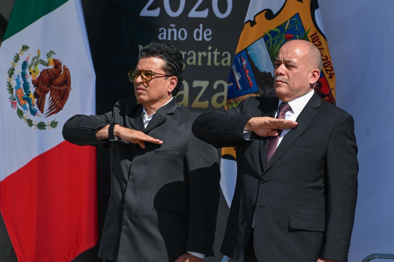 En el evento cívico, estuvieron presentes el Contraalmirante Francisco Figuereo Corona, Comandante del Sector Naval La Pesca; el General Jesús Amparán Hernández, coordinador de la Guardia Nacional de Tamaulipas; Tania Gisela Contreras López, Presidenta del Supremo Tribunal de Justicia; y los secretarios de Educación, Miguel Ángel Valdez, y Carlos Arturo Pancardo de Seguridad Pública.