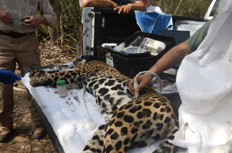 Como parte del protocolo de manejo, el equipo veterinario realizó la evaluación clínica integral del ejemplar, aplicando anestesia para su manejo en campo. Se efectuó el pesaje (40.250 kg), estudios con equipo de diagnóstico portátil (rayos X y ultrasonido), toma de medidas morfométricas, extracción de muestras biológicas (sangre y pelo), así como el registro del patrón de manchas y huellas, fortaleciendo la información técnica del programa estatal.