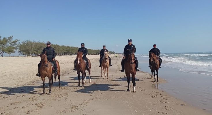 Soto la Marina, Tamaulipas.– En el marco del periodo vacacional de Semana Santa 2026, el Agrupamiento Montado de la Guardia Estatal puso en marcha un operativo especial de seguridad en la playa La Pesca, uno de los destinos turísticos más concurridos del estado.