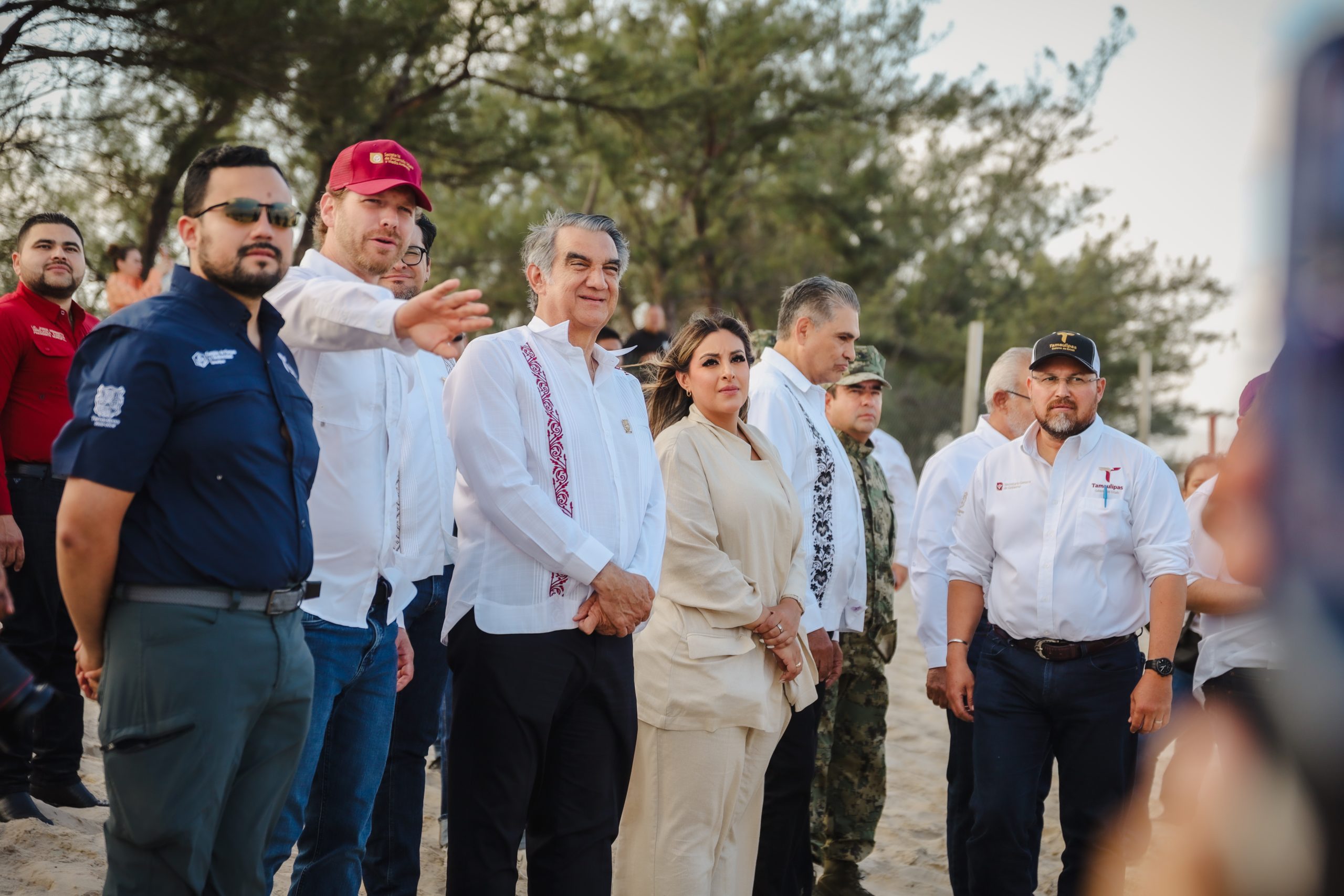 Más tarde, la comitiva realizó un recorrido por la zona costera, incluyendo el campo tortuguero, donde se brindó información sobre las especies que llegan al litoral tamaulipeco y las acciones de conservación que se implementan en la región.